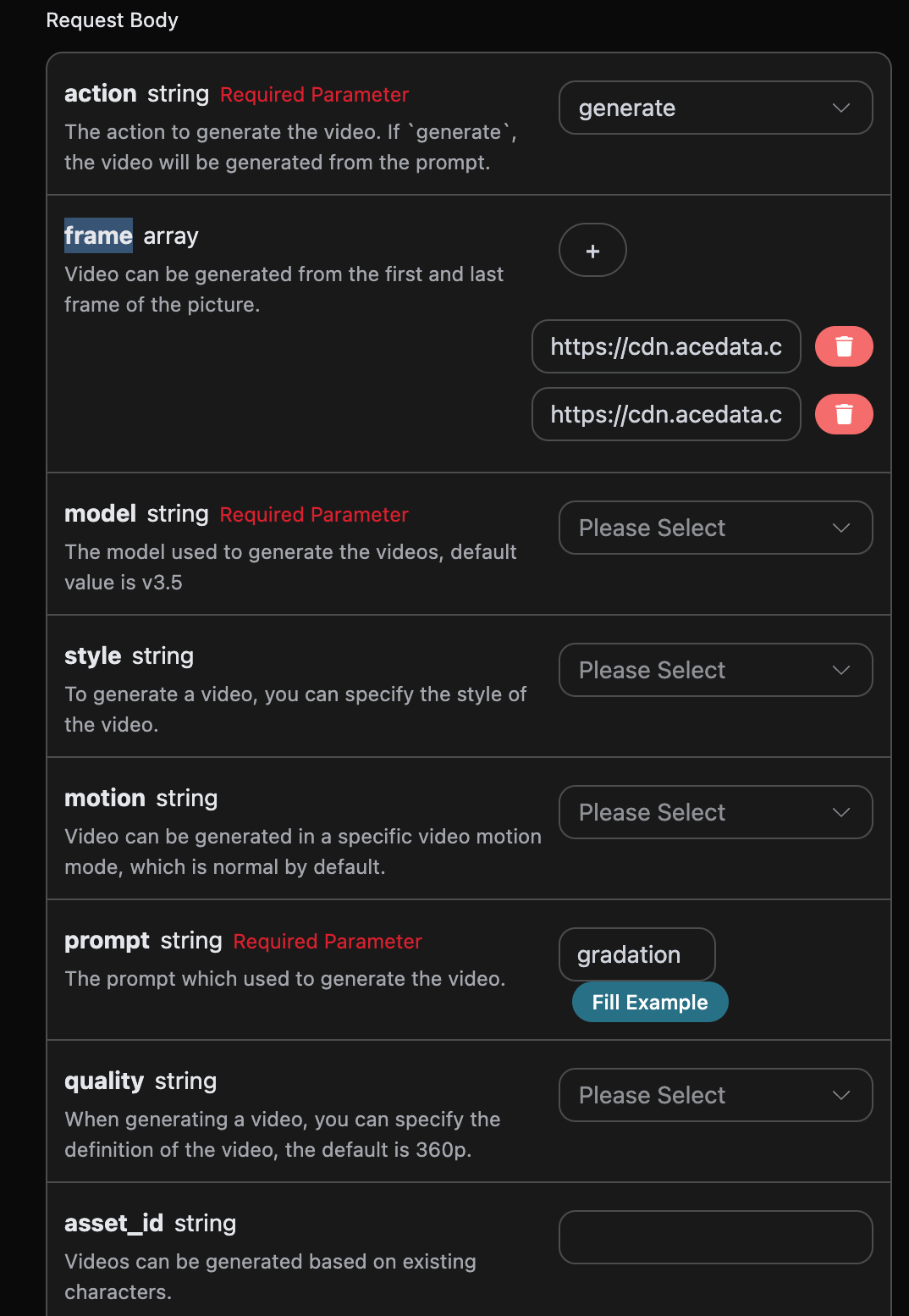 If you want to customize the first and last frames for video generation, you can input the links to the first and last frame images:
