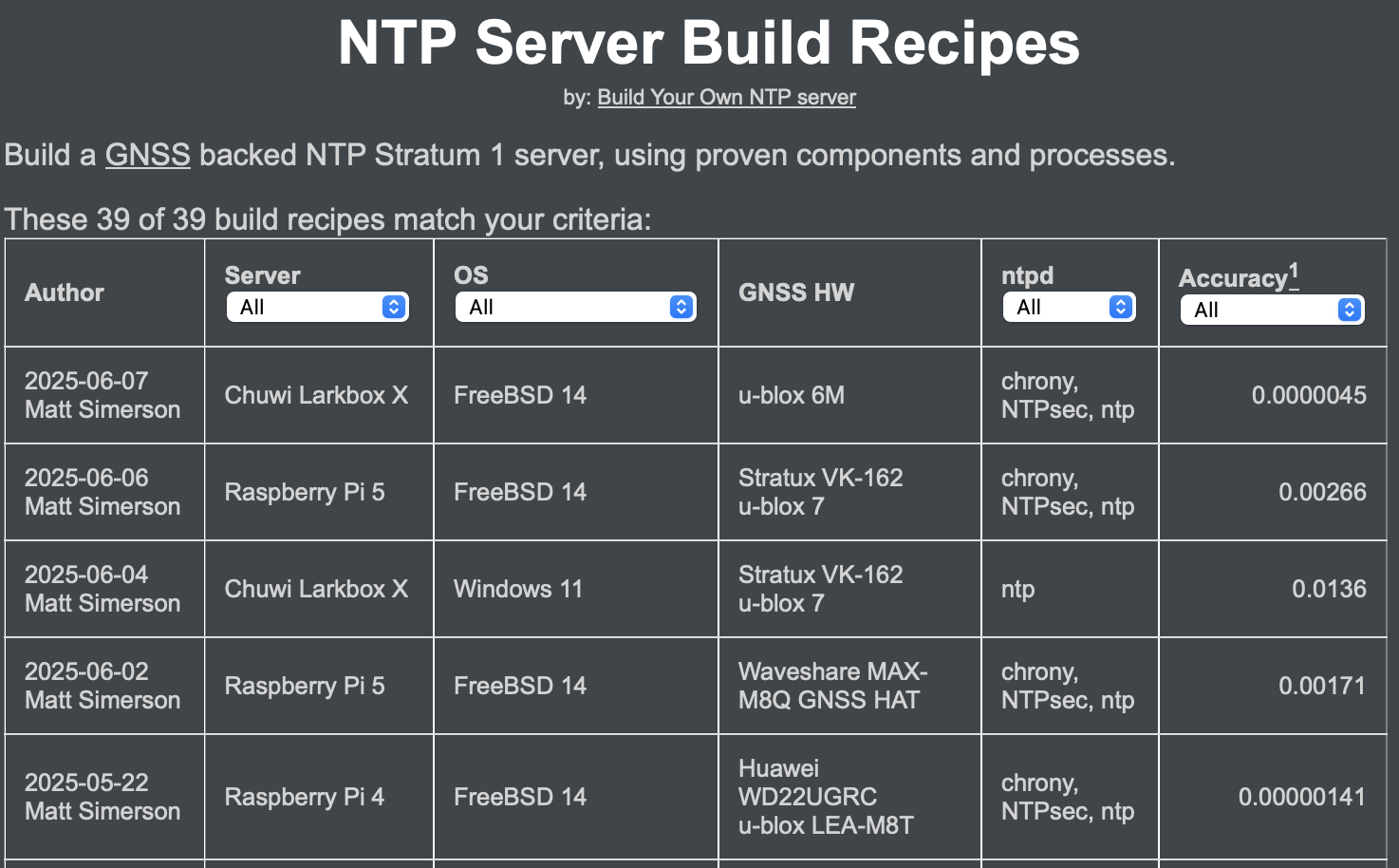 - The recipes wiki has BYO-NTP published NTP build recipes.