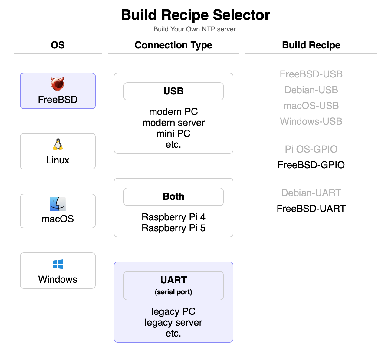 - BYO-NTP Recipes is a filterable list. The source is in the recipes repo.