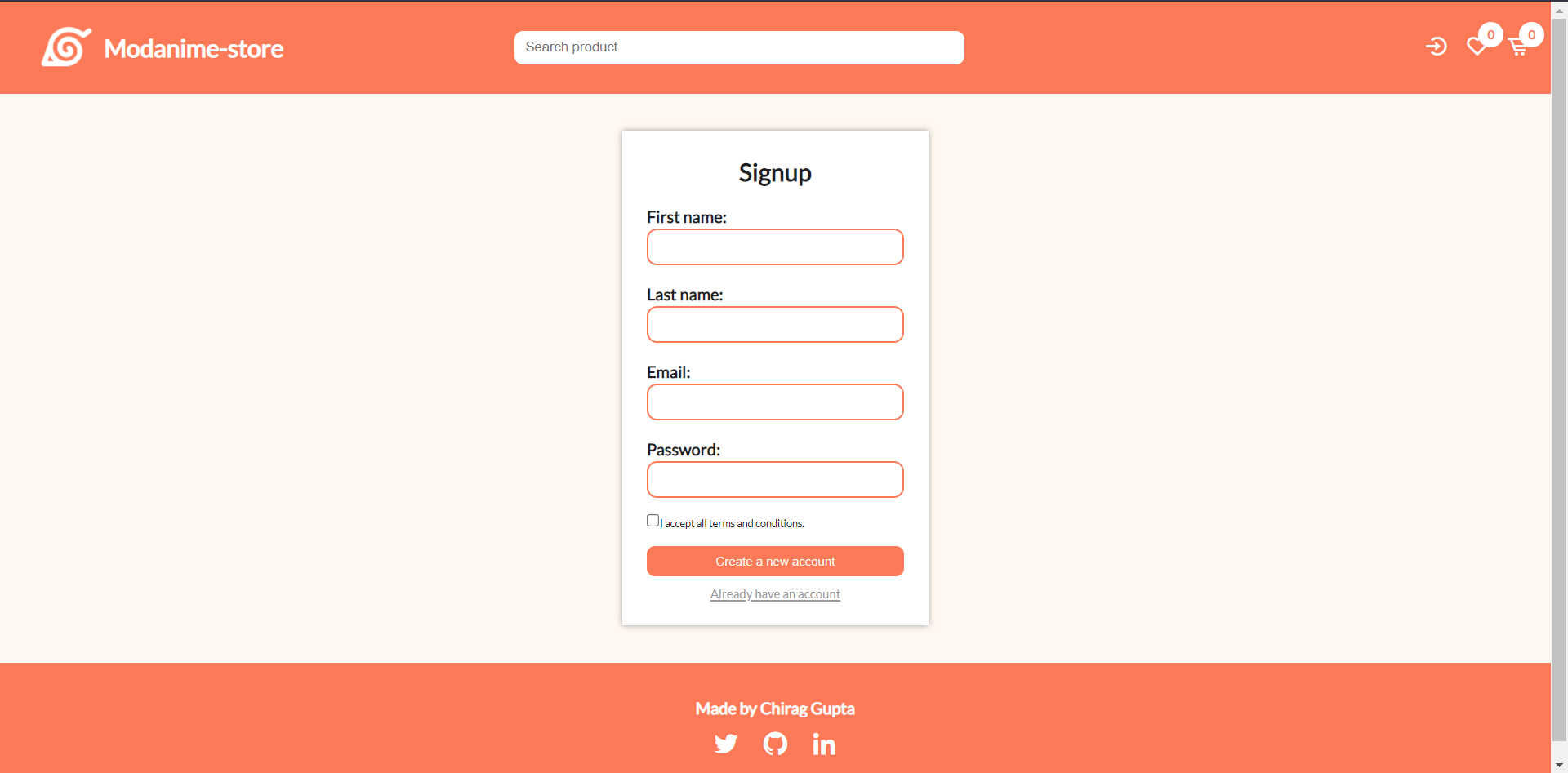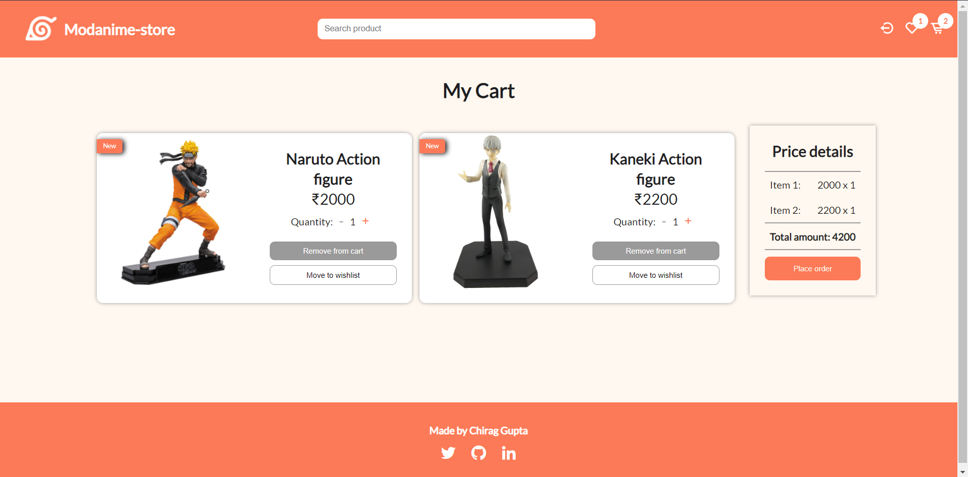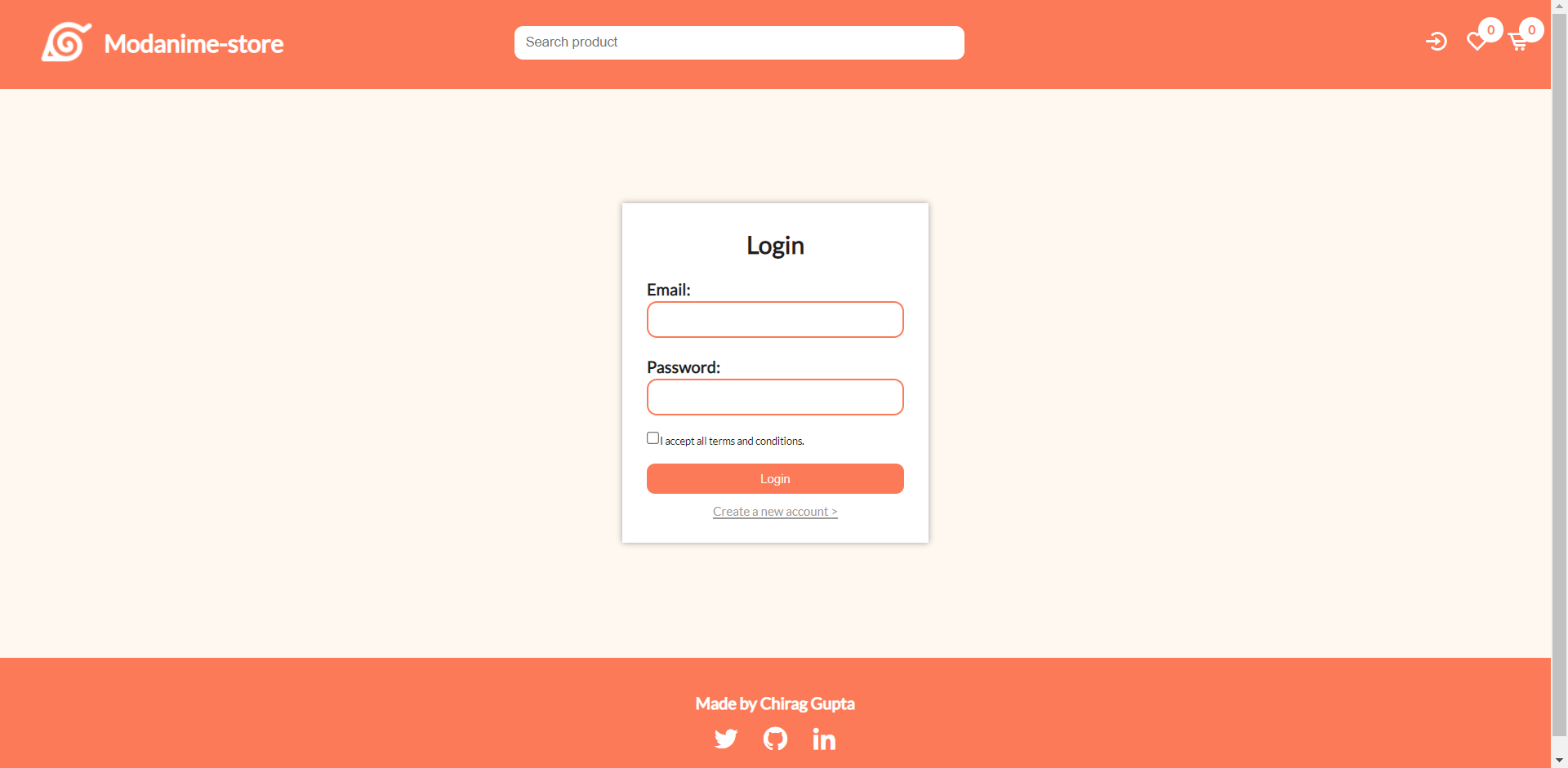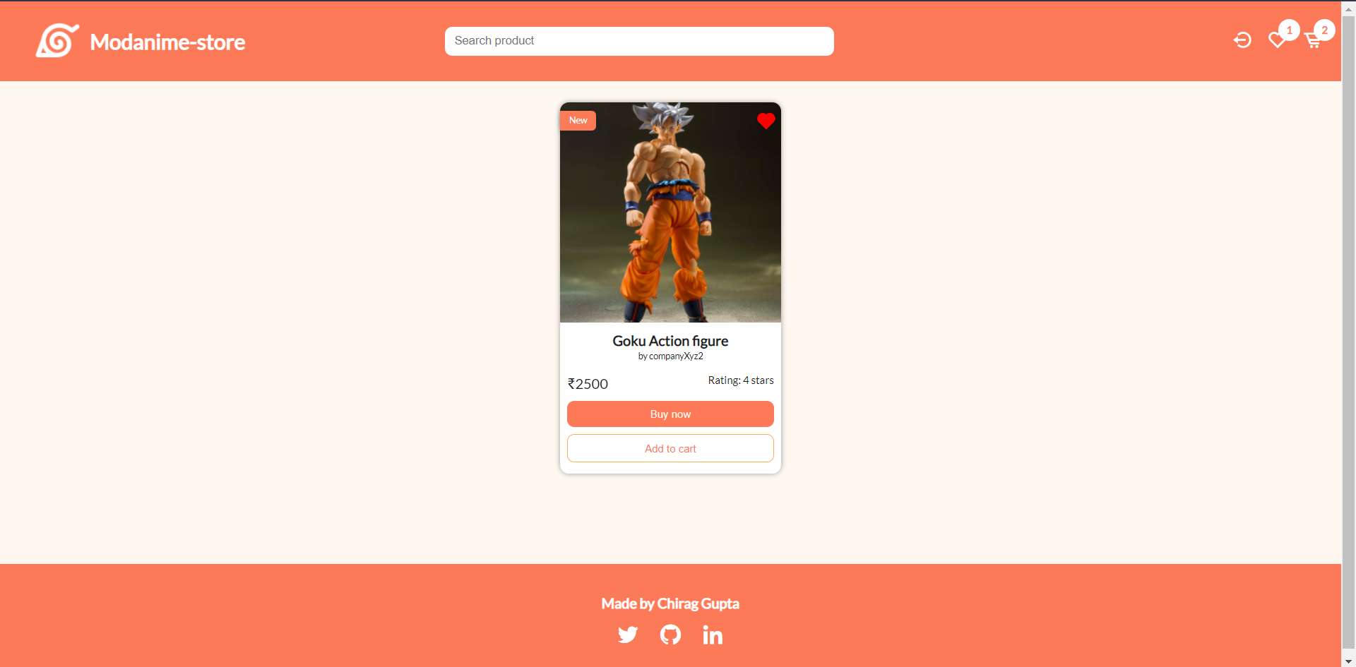 Modanime react store is an ecommerce web application made with React.js . It displays various anime related products to the market.