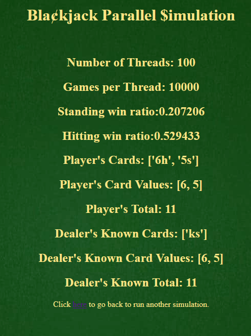 The bottom values appear to be displaying in correctly, not based on actual cards inputted. The sim seems unchanged.