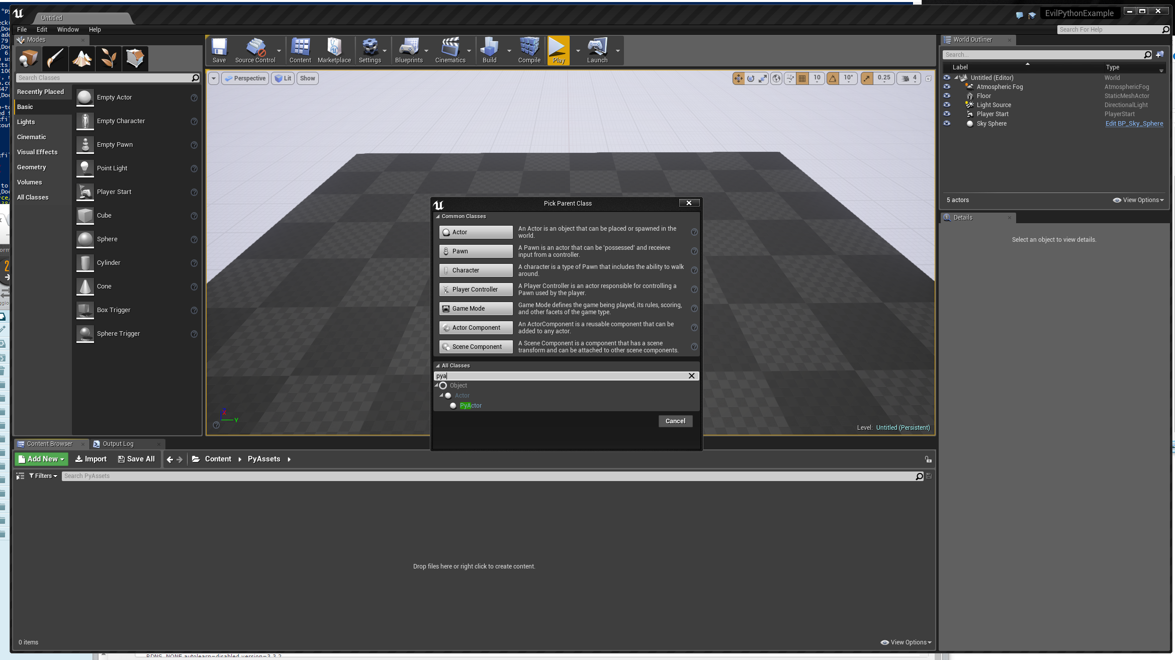 We are going to create a new Actor based on python (instead of C++ or blueprints)