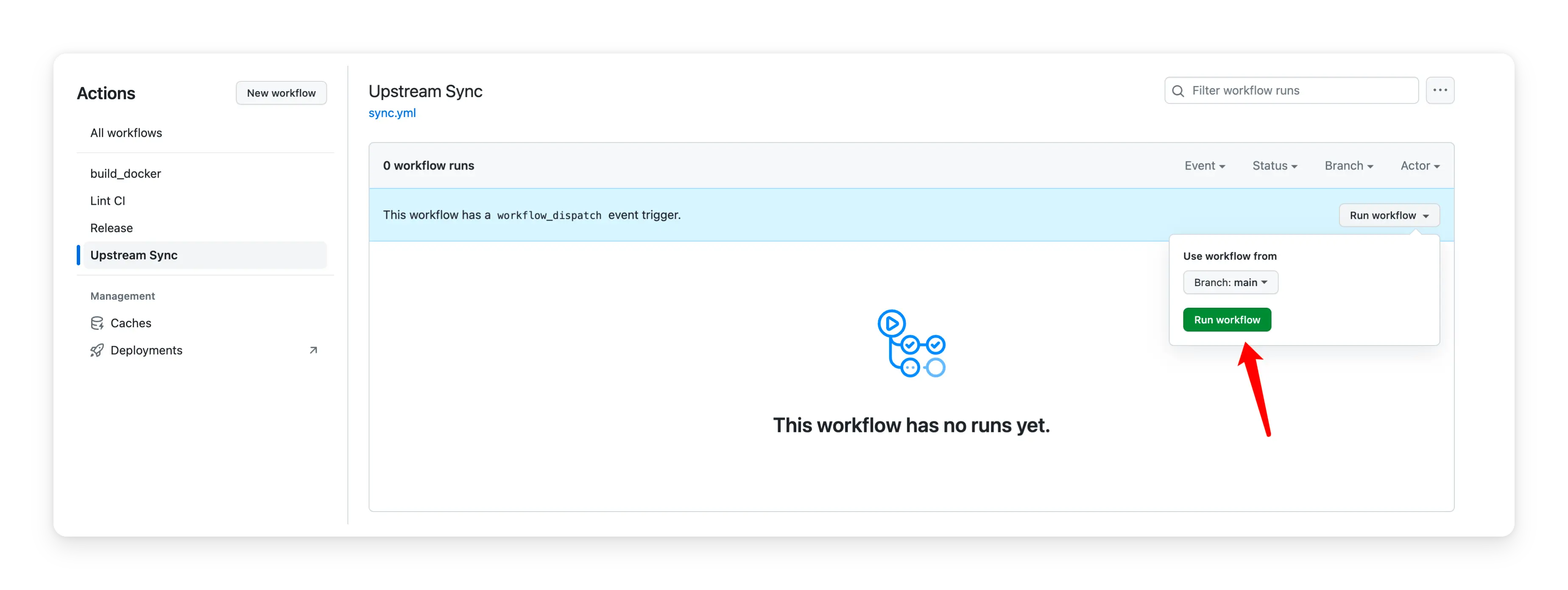 After forking the project, you need to manually enable Workflows and Upstream Sync Action on the Actions page of the forked project. Once enabled, automatic updates will be scheduled every day: