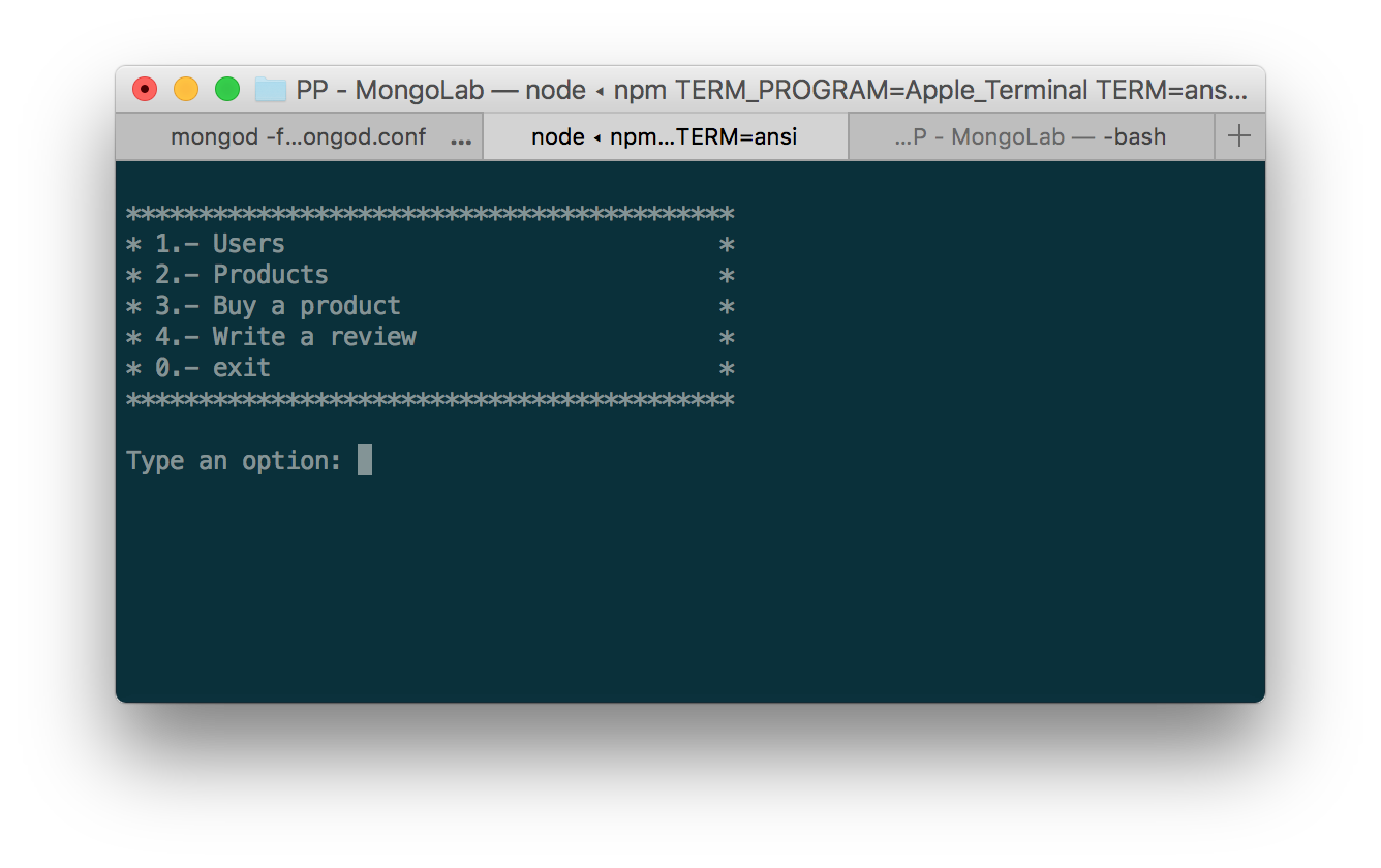 $ git clone https://github.com/ironhack/lab-mongo-shopOnce you've downloaded the repo, enter in that folder and type: