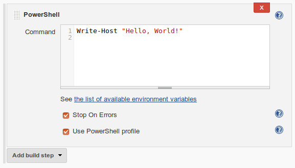 Integrates with PowerShell by allowing you to directly write PowerShell scripts into the text box in Jenkins. Other than that, this plugin works pretty much like the standard shell script support.