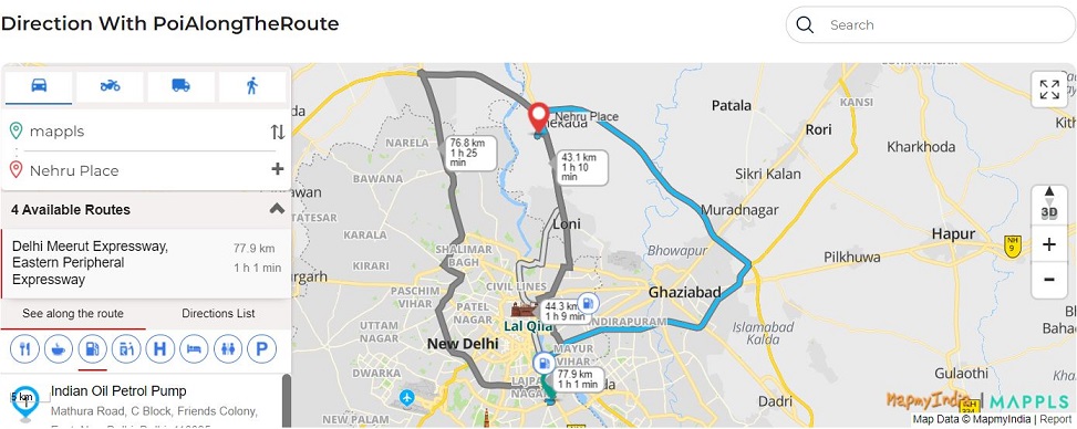 Inbuilt Search along the Route : Use default POI categories OR select across other categories available with us. Read more