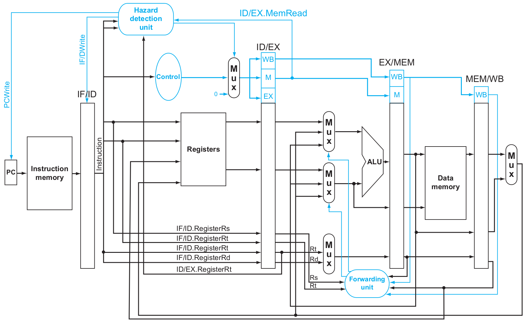 - Classic 5-stage pipeline, including FETCH, DECODE, EXECUTE, MEM and WB.