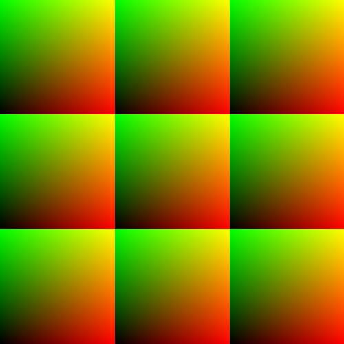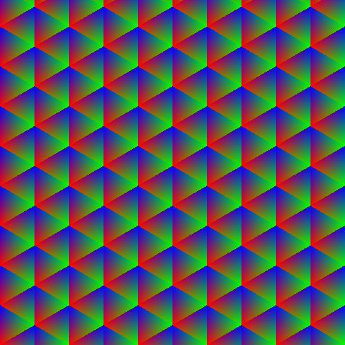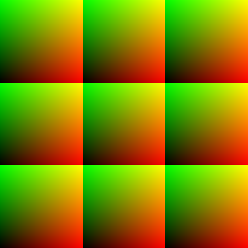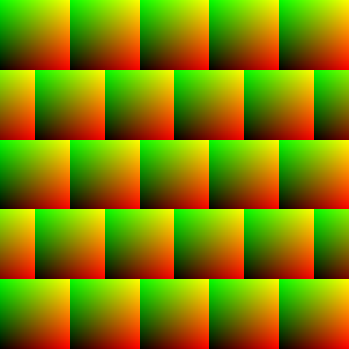 color.rg += brick(v_texcoord.xy,5.);Repeats a coordinate space (vec2 st) in diferent simplex tiles. To learn more about simplex grids check this chapter about noise from the Book of Shaders