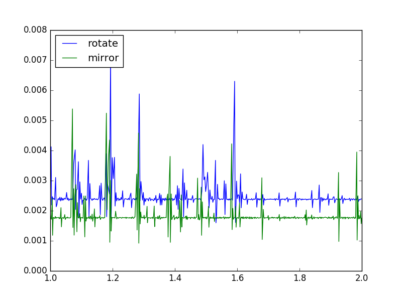 - rotate ( mean: 0.00245097041267 median: 0.002383 )