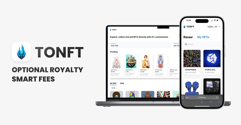 TONFT is a decentralized and open source NFT bazaar-marketplace where you can have optional 0 royalties on any NFT sale. Also, we invented and developed smart fee system, which is similar to real estate agents but in NFT world (described in the features below). The system creates incentives to trade NFTs more → contributes to the entire TON market volumes in general.